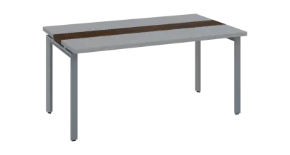 DOUBLE 160 pracovní stůl, kovová podnož stříbrná, deska 36 mm, široký 1600 mm, šedá, vložená deska ořech královský