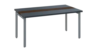 DOUBLE 160 pracovní stůl, kovová podnož stříbrná, deska 36 mm, široký 1600 mm, antracit, vložená deska ořech královský