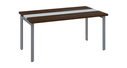 DOUBLE 160 pracovní stůl, kovová podnož stříbrná, deska 36 mm, široký 1600 mm, ořech královský, vložená deska šedá