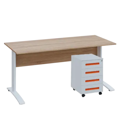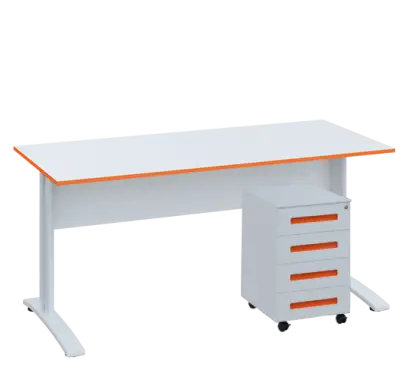 novinka inspirovaná barvou roku 2025, kancelářský stůl se stabilní podnoží, povrchová úprava kovové podnože práškovým vypalovacím lakem, pojízdný kovový kontejner se 4 zásuvkami, v horní zásuvce umístěn tužkovník