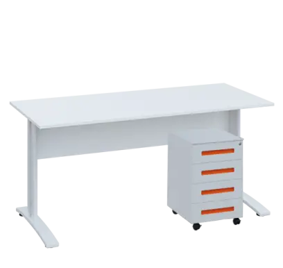 kancelářský stůl se stabilní podnoží, povrchová úprava kovové podnože práškovým vypalovacím lakem, pojízdný kovový kontejner se 4 zásuvkami, v horní zásuvce umístěn tužkovník