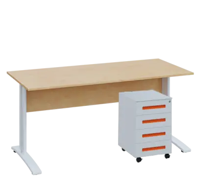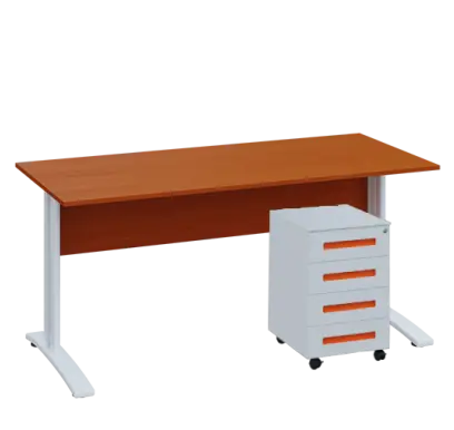 kancelářský stůl se stabilní podnoží, povrchová úprava kovové podnože práškovým vypalovacím lakem, pojízdný kovový kontejner se 4 zásuvkami, v horní zásuvce umístěn tužkovník