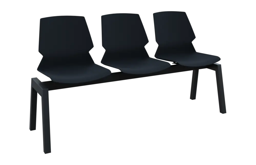 PRETTY 3, plastová lavice do čekárny, 3-sedák, černá, kostra černá