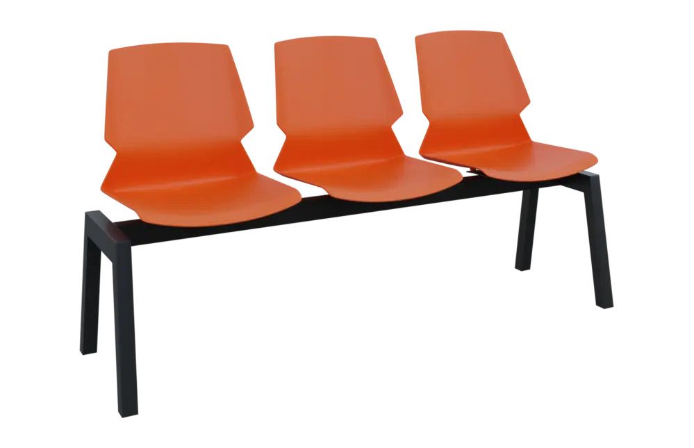 PRETTY 3, plastová lavice do čekárny, 3-sedák, oranžová, kostra černá