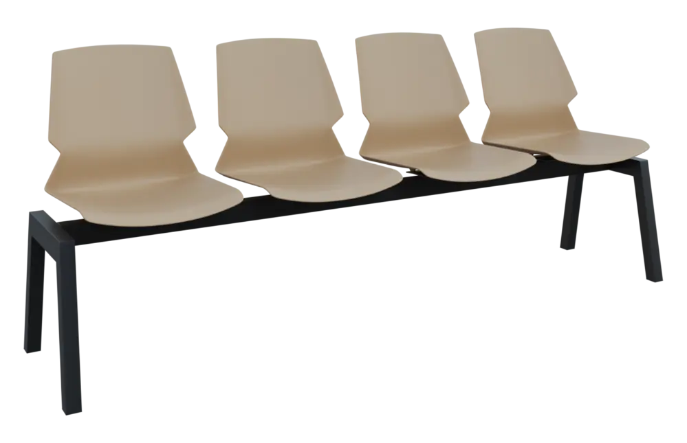 PRETTY 4, plastová lavice do čekárny, 4-sedák, světlá káva, kostra černá