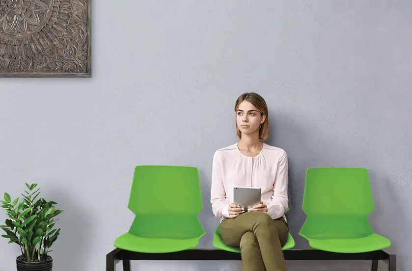 zvýšená plastová čekárenská lavice, stříbrná kovová kostra, různé barvy, již smontované