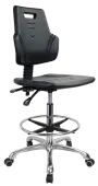ergonomická laboratorní židle pro bezpečné a pohodlné sezení, snadné čištění běžnými prostředky i případnou dezinfekci, odolnost proti chemikáliím, olejům i mechanickému poškození