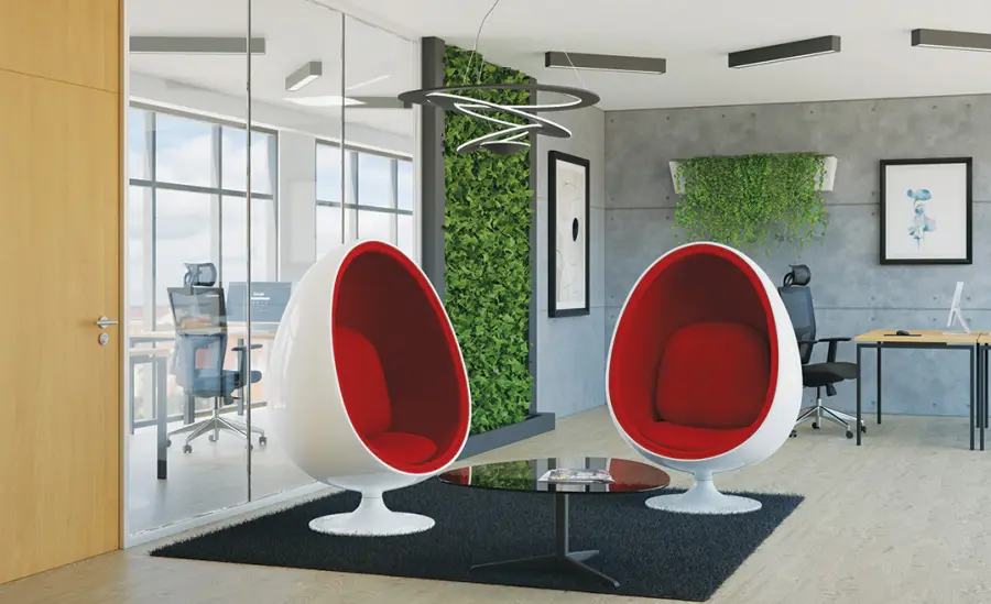originální křeslo inspirované tvarem vajíčka, které uživateli poskytne pohodlí a ticho