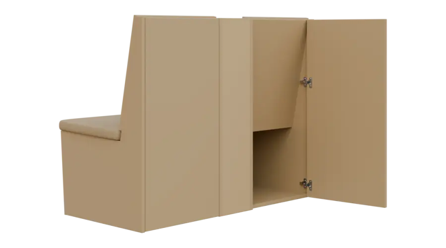 Lavice z řady RELAXIA jsou vhodné k ustavení ke zdi či do prostoru. V zadní části mají lavice dvířka na tip-on s úložným prostorem.