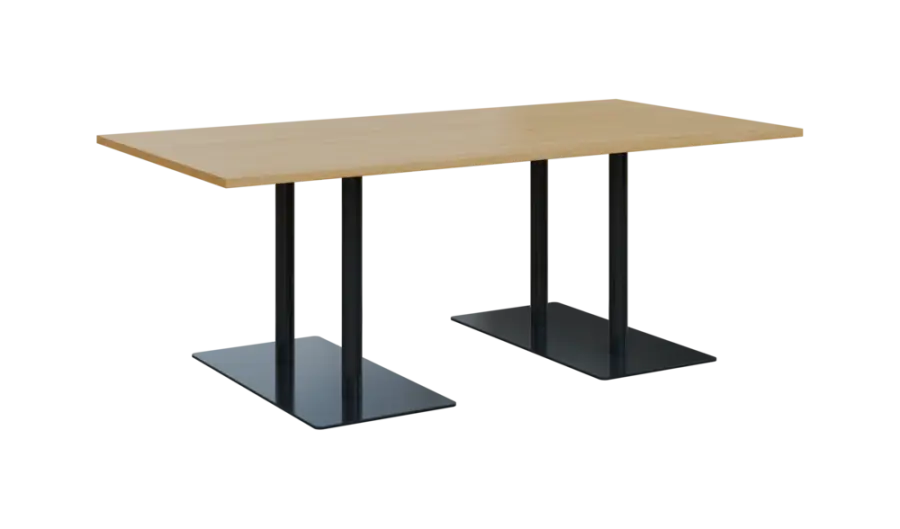 jednací stůl na dvojité centrální noze, trubková noha, obdélníková základna