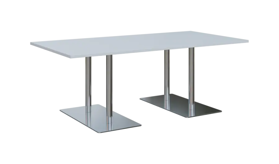 jednací stůl na dvojité centrální noze, trubková noha, obdélníková základna