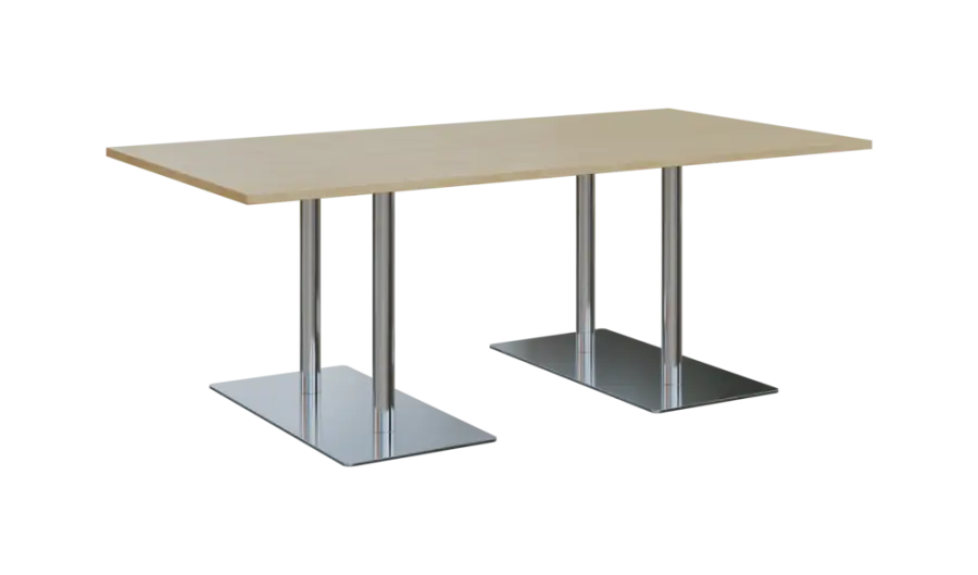 jednací stůl na dvojité centrální noze, trubková noha, obdélníková základna