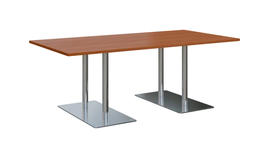 jednací stůl na dvojité centrální noze, trubková noha, obdélníková základna