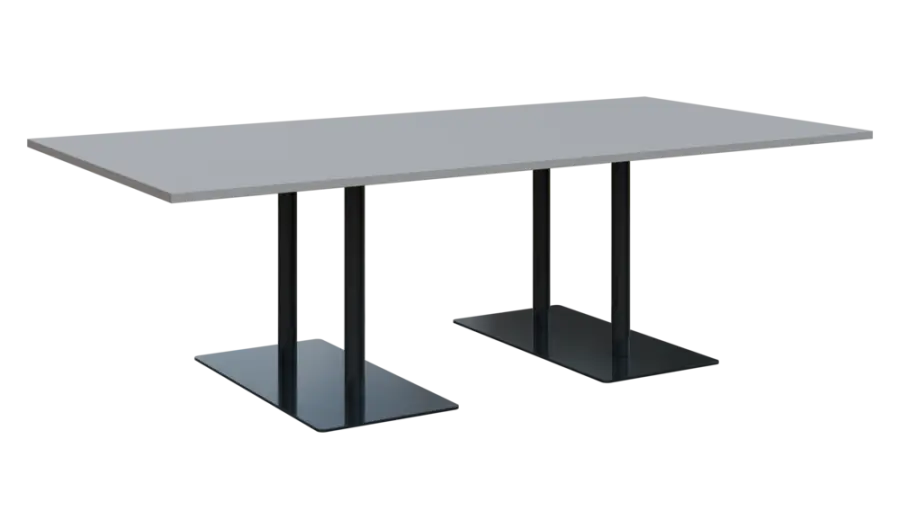 jednací stůl na dvojité centrální noze, trubková noha, obdélníková základna