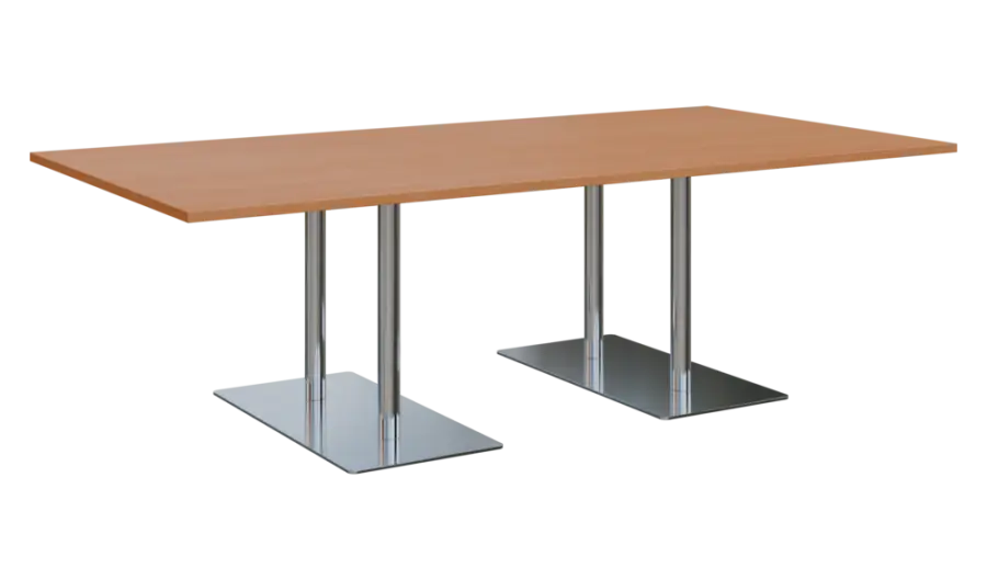 jednací stůl na dvojité centrální noze, trubková noha, obdélníková základna