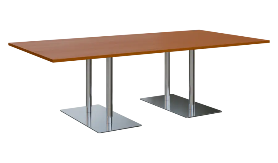 jednací stůl na dvojité centrální noze, trubková noha, obdélníková základna