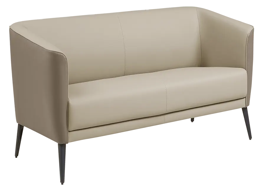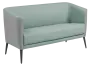 zajímavě řešená harmonická kombinace dvou barev čalounění, jemné a elegantní linie, černé kovové nohy