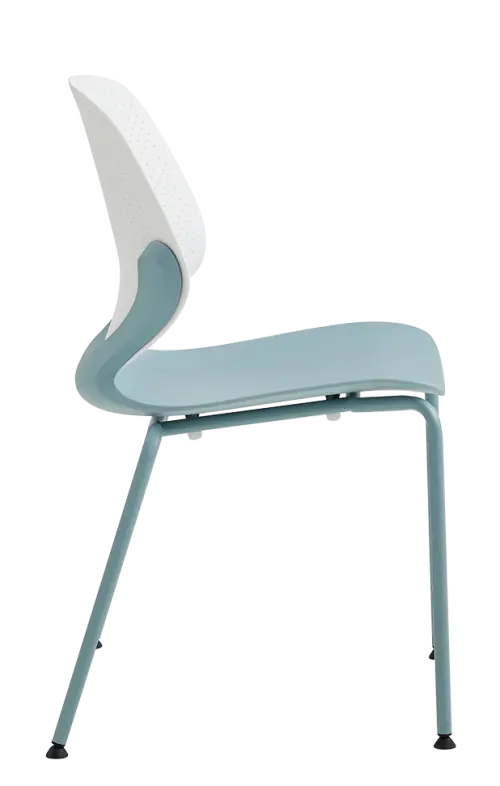 designová židle ROSA na první pohled zaujme svým elegantním propojením opěráku se sedací částí, kontrast mezi barevným sedákem sladěným s kovovými nohy a bílým jemně perforovaným opěrákem působí svěže, odlehčeně a dodá židli šmrnc