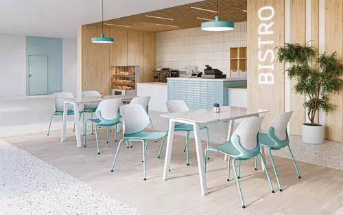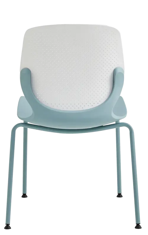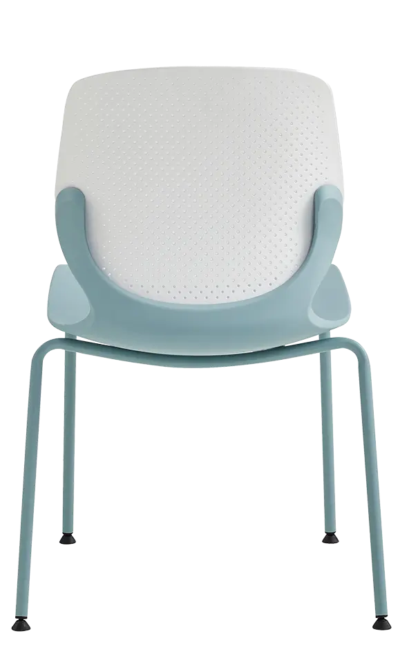 designová židle ROSA na první pohled zaujme svým elegantním propojením opěráku se sedací částí, kontrast mezi barevným sedákem sladěným s kovovými nohy a bílým jemně perforovaným opěrákem působí svěže, odlehčeně a dodá židli šmrnc