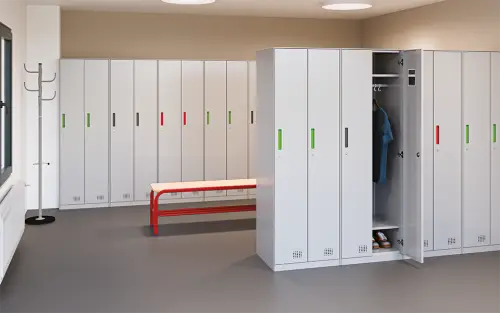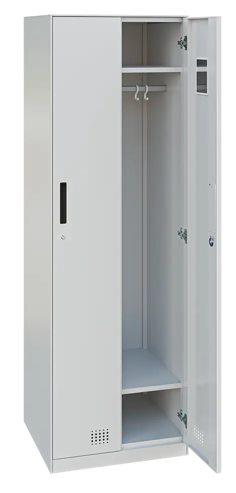 • dvoudvéřová uzamykatelná kovová šatní skříň