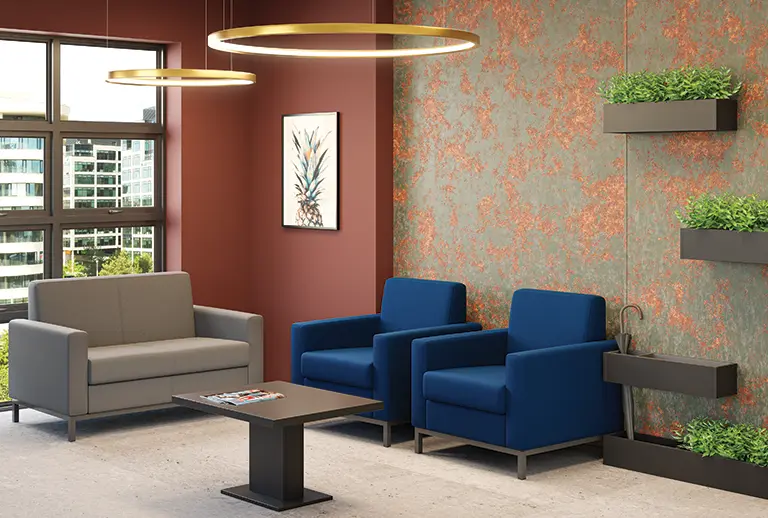 sedací souprava s oddělenými místy k sezení, vhodná do recepcí, čekáren a kanceláří, kovové nohy v antracitovém laku, čalouněno v látce