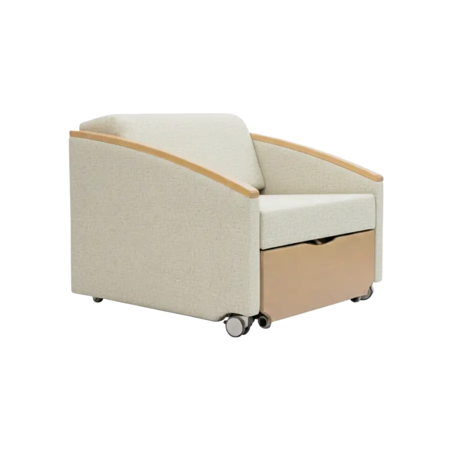 kombinace odpočinkového komfortního křesla a pohodlné postele, tři polohy - v sedě, s vytaženou podnožkou, plně rozložená pro spaní, sedák a opěrák je vyroben z kvalitní PUR pěny splňující normu ČSN EN 1021 - 1,2