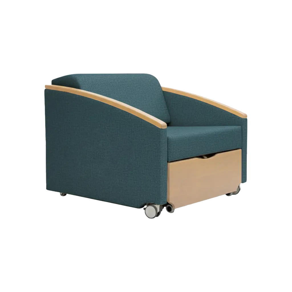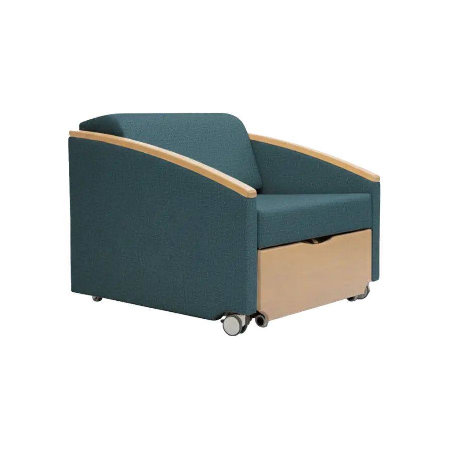 kombinace odpočinkového komfortního křesla a pohodlné postele, tři polohy - v sedě, s vytaženou podnožkou, plně rozložená pro spaní, sedák a opěrák je vyroben z kvalitní PUR pěny splňující normu ČSN EN 1021 - 1,2