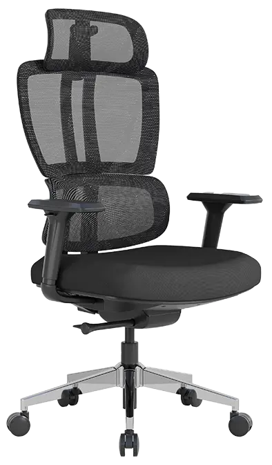 vysoká manažerská židle s dokonalou ergonomií opěrák a hlavová opěrka čalouněny samonosnou síťovinou té nejvyšší kvality, sedák z tvarované pěny čalouněný vzdušnou látkou
