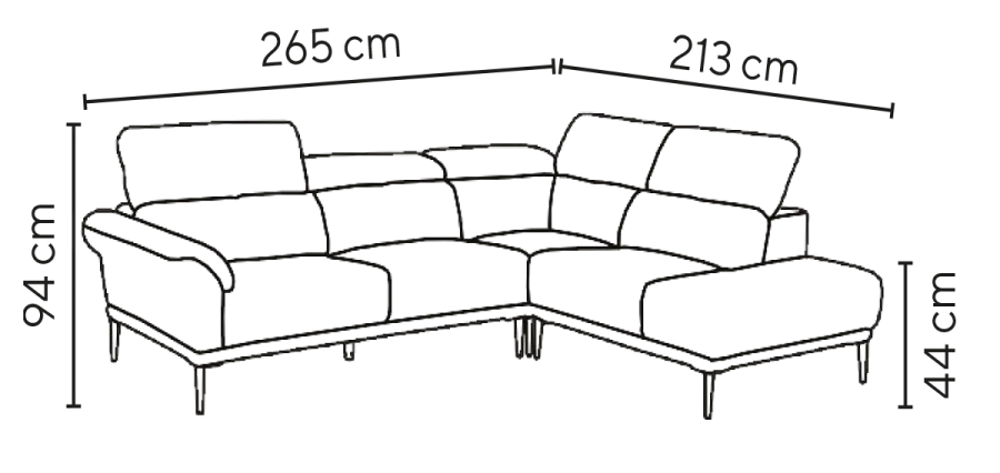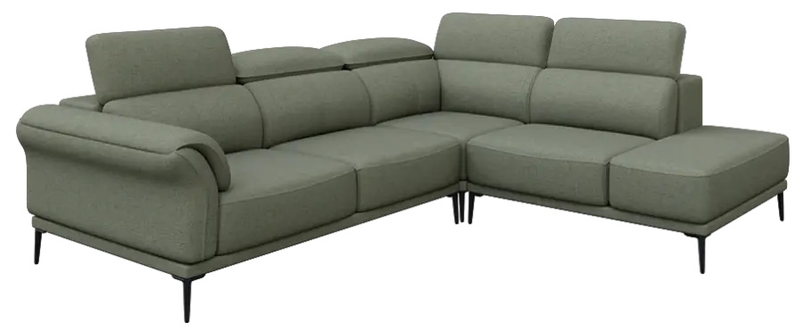 celočalouněná rohová sedačka, komfort sezení zvyšují sklopné podhlavníky z komfortní pěny, sedák je tvořen taštičkovým pružinovým jádrem s vrstvou vysoce kvalitní pěny