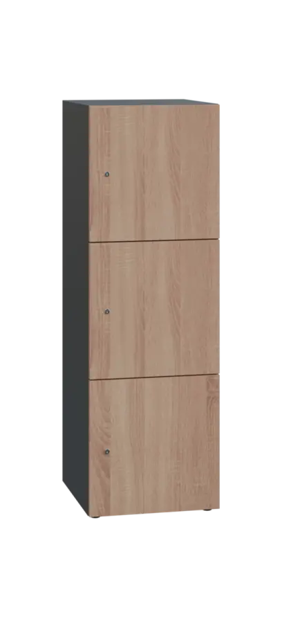 DOMINIT 33 úložná skříň 3-boxová, 1367x450x400 mm, korpus antracit, dvířka bříza světlá