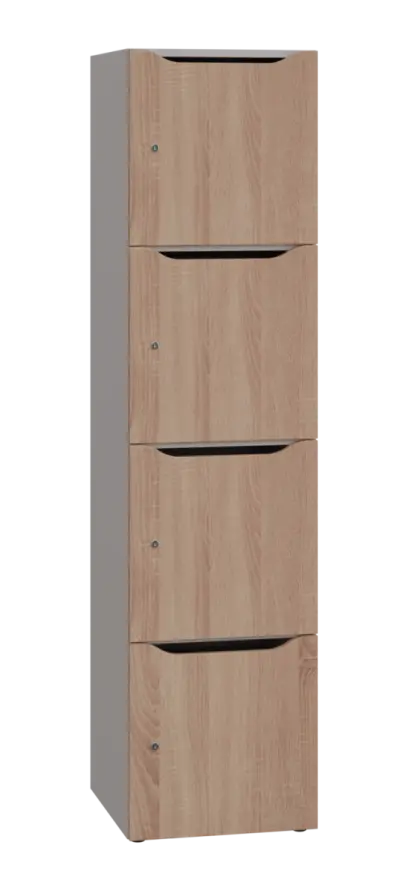 DOMINOU 44 úložná skříň 4-boxová, 1817x450x400 mm, korpus šedý, dvířka buk royal