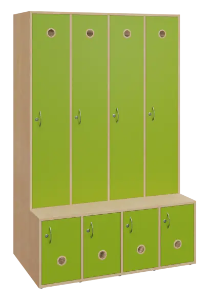 SSB - 180 - 120 šatní skříň s botníkem, 4-dvéřová, 1800x1200x400/600 mm, korpus buk royal, dvířka jarní zeleň