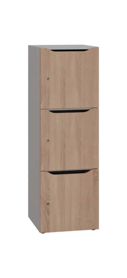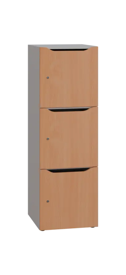DOMINOU 33 úložná skříň 3-boxová, 1367x450x400 mm, korpus šedý, dvířka buk royal