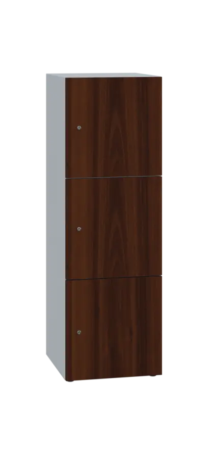 DOMINIT 33 úložná skříň 3-boxová, 1367x450x400 mm, korpus bílý, dvířka ořech královský