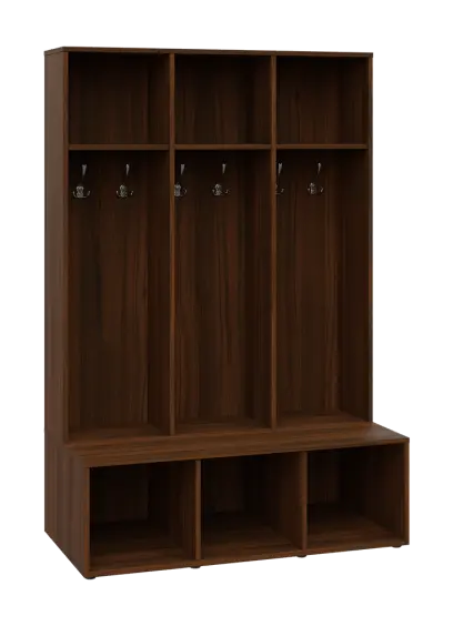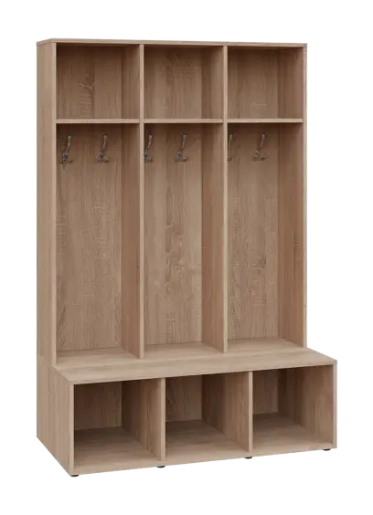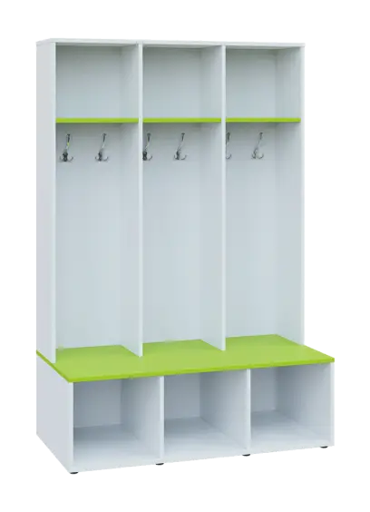 celolaminové otevřené šatní skříně jsou koncipované do sportovišť a šaten, otevřená šatní část obsahuje 2x trojháček