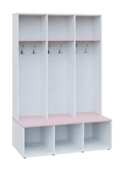 SOB - 180 - 120 šatní skříň s botníkem, otevřená, 1800x1200x300/600 mm, korpus bílá, police pastelově růžová