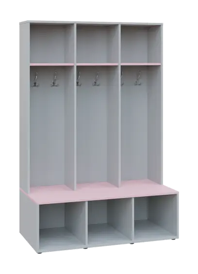 SOB - 180 - 120 šatní skříň s botníkem, otevřená, 1800x1200x300/600 mm, korpus šedá, police pastelově růžová