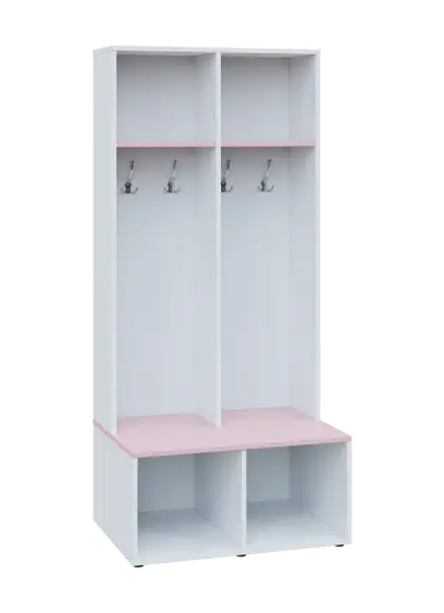 SOB - 180 - 80 šatní skříň s botníkem, otevřená, 1800x800x300/600 mm, korpus bílá, police pastelově růžová