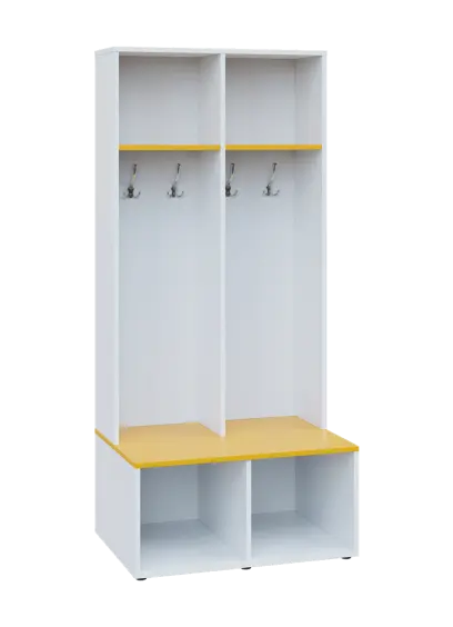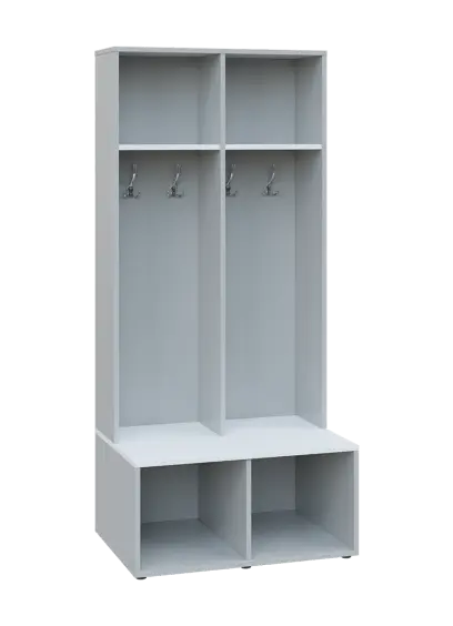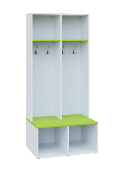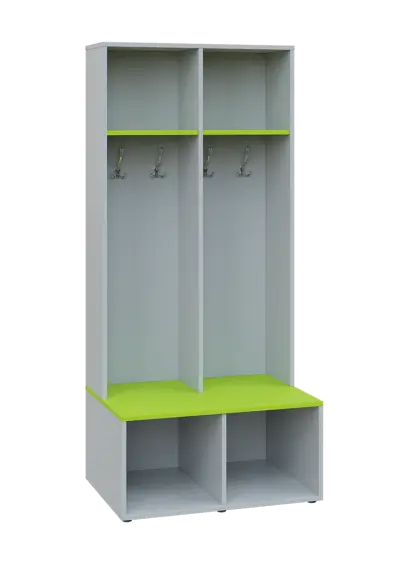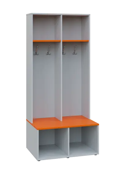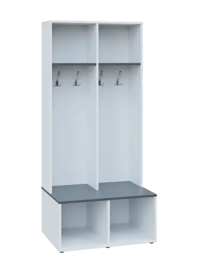 celolaminové otevřené šatní skříně jsou koncipované do sportovišť a šaten, otevřená šatní část obsahuje 2x trojháček
