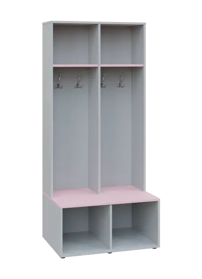 SOB - 180 - 80 šatní skříň s botníkem, otevřená, 1800x800x300/600 mm, korpus šedá, police pastelově růžová