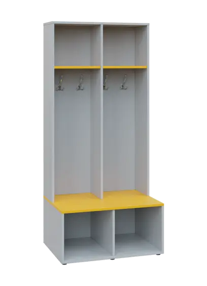 SOB - 180 - 80 šatní skříň s botníkem, otevřená, 1800x800x300/600 mm, korpus šedá, police žlutá odio