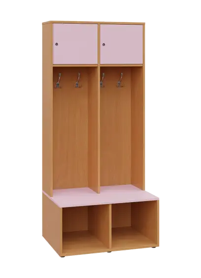 SZB - 180 - 80 šatní skříň s botníkem, 2-dvéřová, 1800x800x300/600 mm, korpus buk royal, dvířka/police pastelově růžová