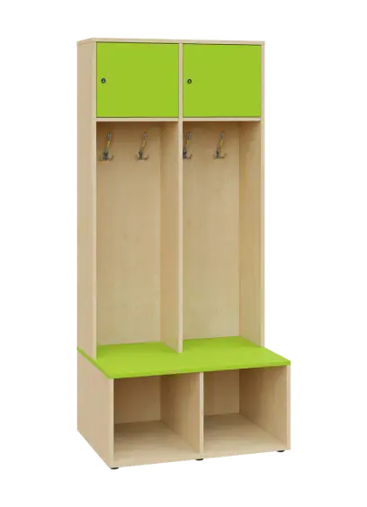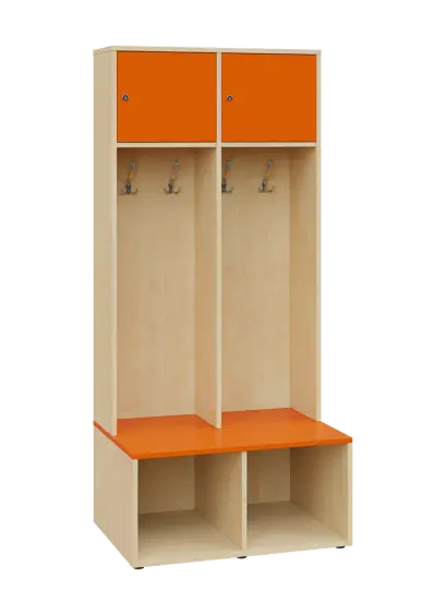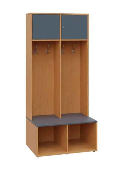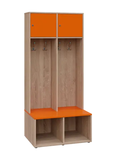 celolaminové otevřené šatní skříně jsou koncipované do sportovišť a šaten, ve vrchní části je vsazena uzamykatelná skříňka, osazena kvalitním zámkem se 2 klíči