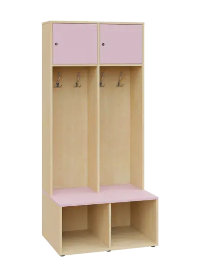 SZB - 180 - 80 šatní skříň s botníkem, 2-dvéřová, 1800x800x300/600 mm, korpus bříza světlá, dvířka/police pastelově růžová