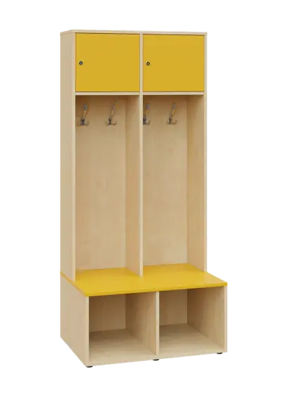 SZB - 180 - 80 šatní skříň s botníkem, 2-dvéřová, 1800x800x300/600 mm, korpus bříza světlá, dvířka/police žlutá odio