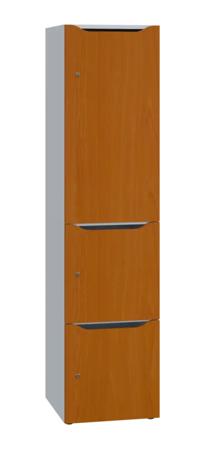 DOMINOU 431 úložná skříň 3-boxová, 1817x450x400 mm, korpus šedý, dvířka třešeň šumavská