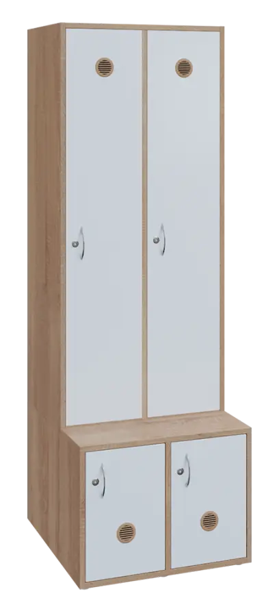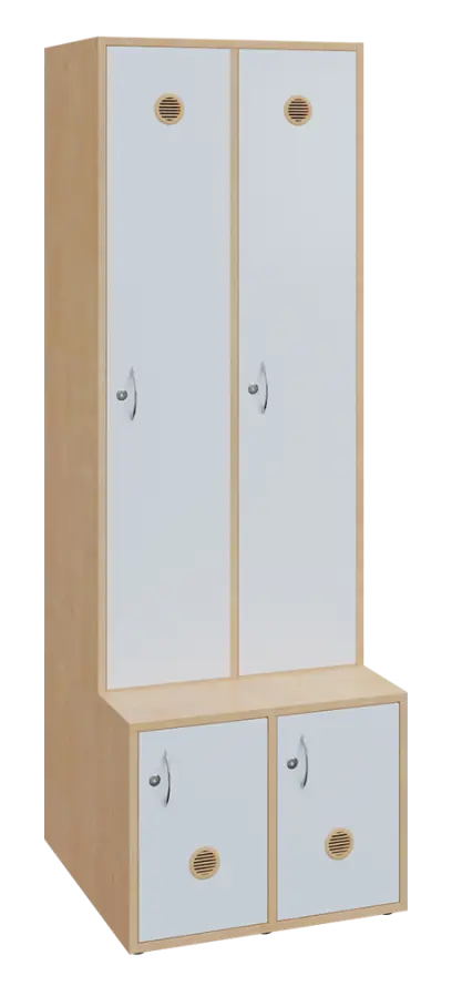 SSB - 180 - 60 šatní skříň s botníkem, 2-dvéřová, 1800x600x400/600 mm, korpus bříza světlá, dvířka bílá