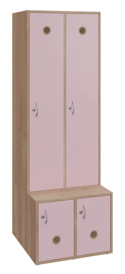SSB - 180 - 60 šatní skříň s botníkem, 2-dvéřová, 1800x600x400/600 mm, korpus bříza světlá, dvířka pastelově růžová