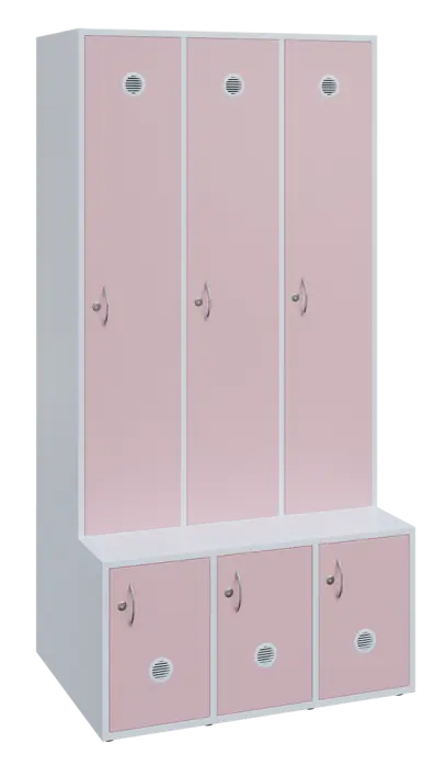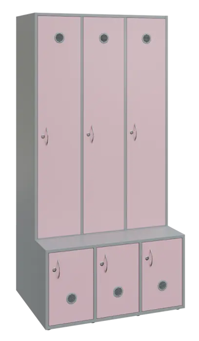 SSB - 180 - 90 šatní skříň s botníkem, 3-dvéřová, 1800x900x400/600 mm, korpus šedý, dvířka pastelově růžová