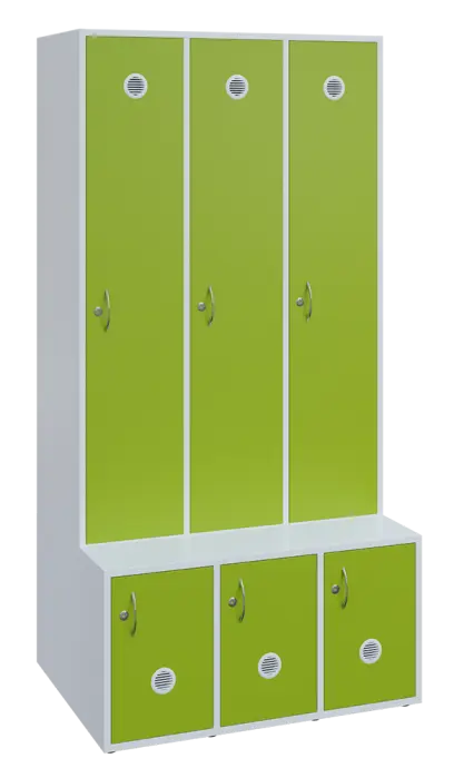 SSB - 180 - 90 šatní skříň s botníkem, 3-dvéřová, 1800x900x400/600 mm, korpus šedý, dvířka jarní zeleň